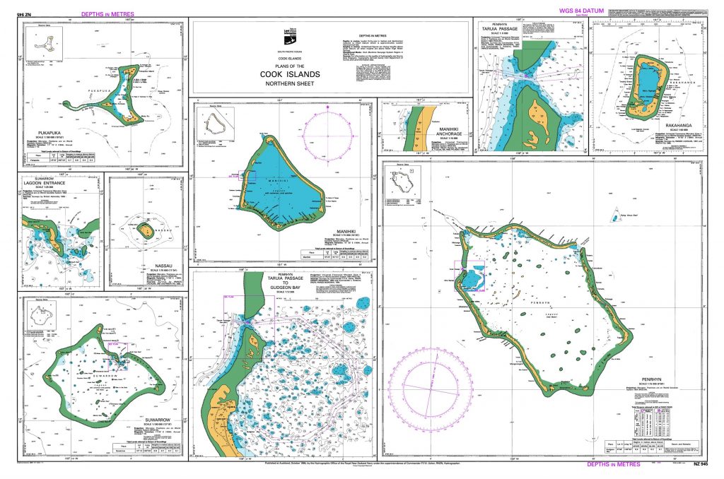 These three nautical charts of the Cook Islands are published by Land Information New Zealand.