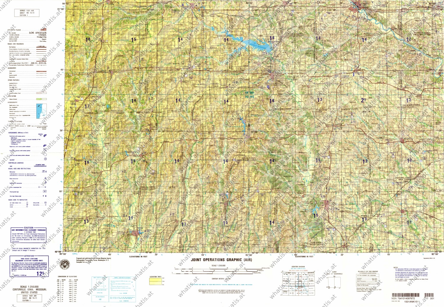 Map title ‒ Centerville, Iowa, United StatesMap number ‒ NK 15-11 (in series Joint Operations Graphic (Air))