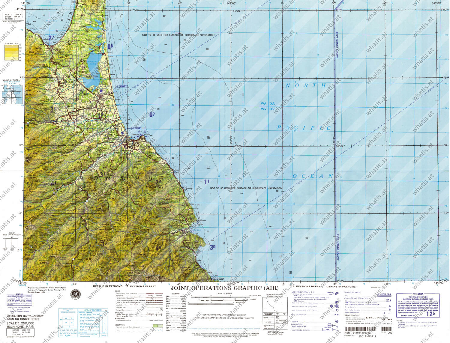 Map title ‒ HachinoheMap number ‒ NK 54-11 (in series World. 1501A. Joint Operations Graphic (air))