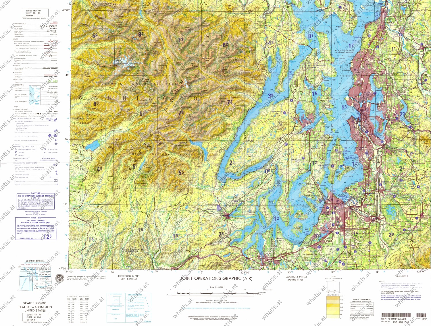 Map title ‒ Seattle, Washington, United StatesMap number ‒ NL 10-2 (in series Joint Operations Graphic (Air))